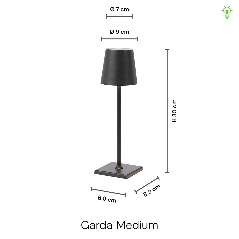 Garda Medium 30cm Trådløs Bordlampe IP54 Sort